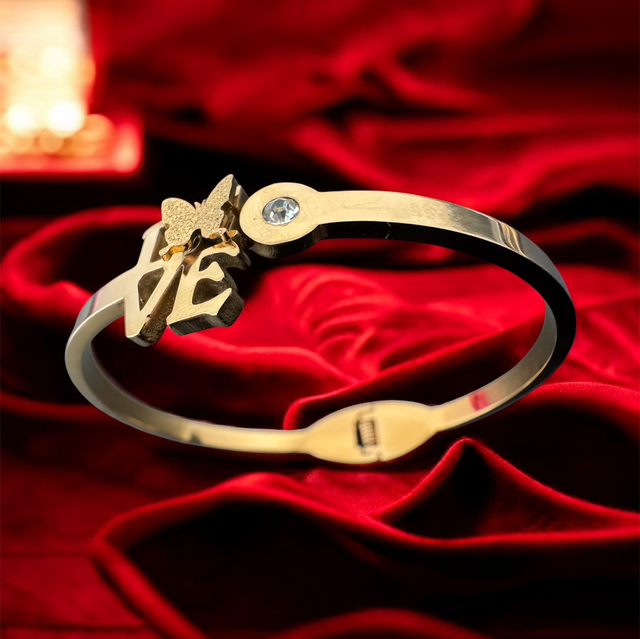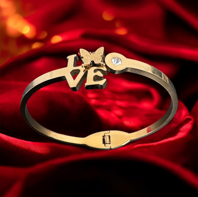 Le Bracelet Livia incarne l’élégance et la tendresse. Son design doré met en avant le mot LOVE, délicatement orné d’un papillon symbole de liberté et d’un zircon étincelant. Raffiné et intemporel, il illumine le poignet avec subtilité tout en apportant une touche de douceur à chaque tenue.